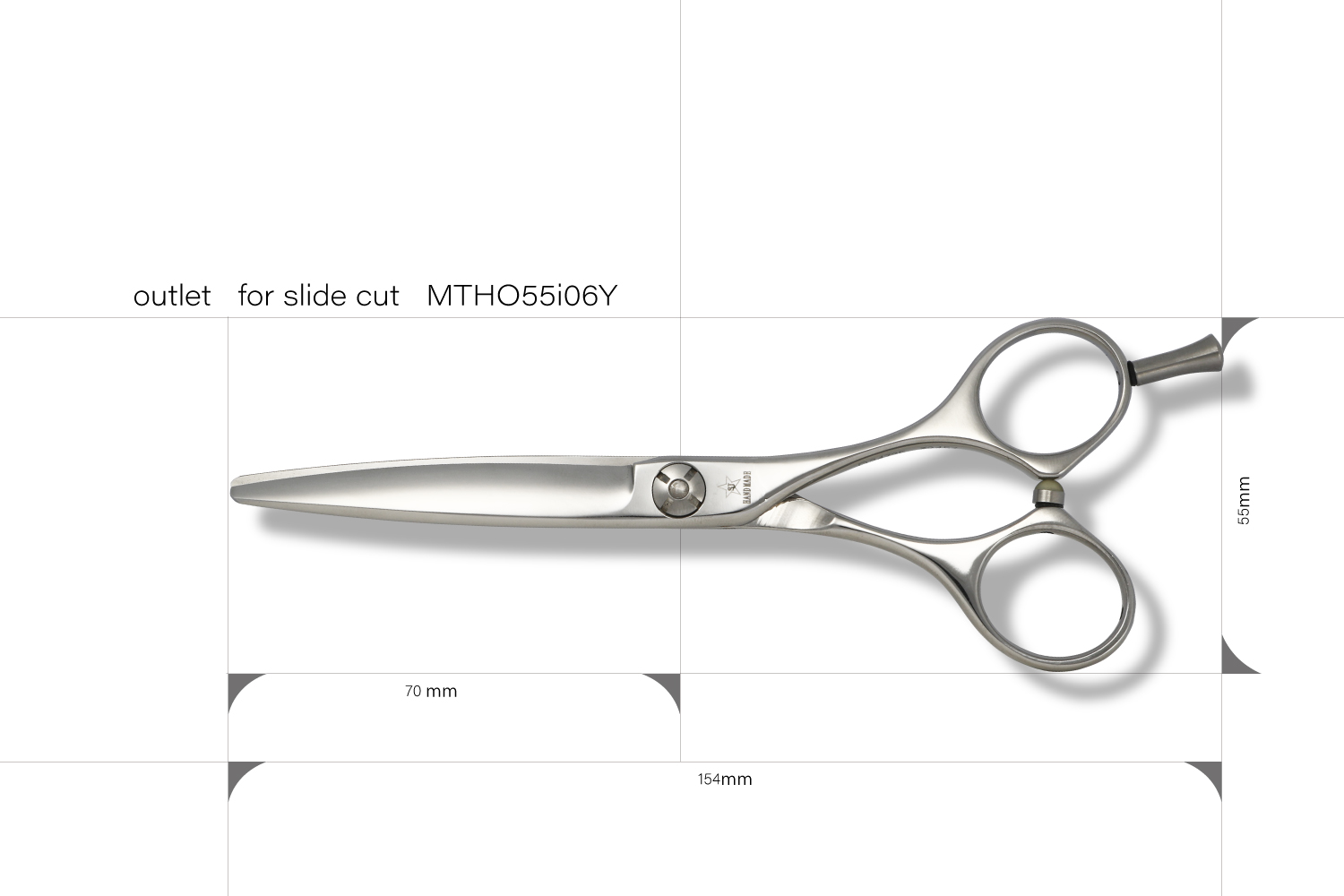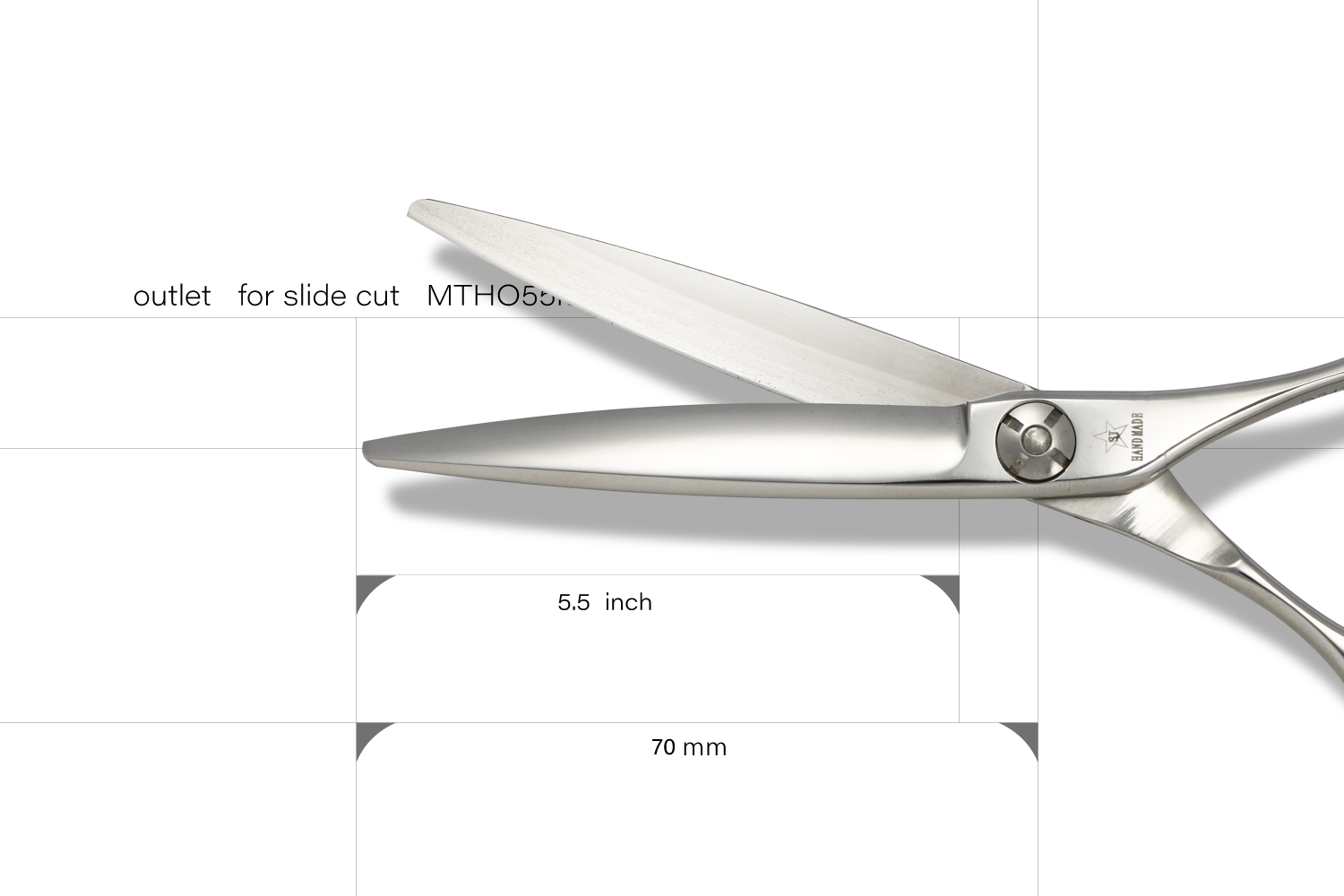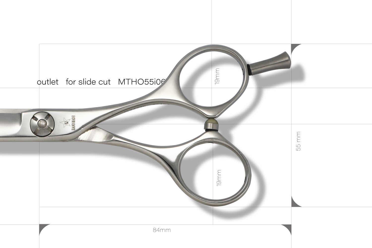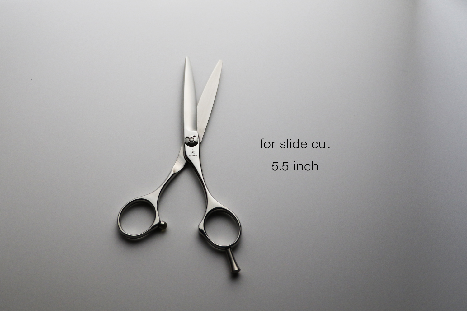 メガネハンドル、いろいろな角度で切るスライドカット用としてバランスがとてもいいシザーです