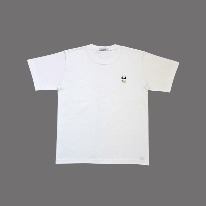 胸元に3色(ホワイト・ブラック・シルバー)でロゴ刺繍したオリジナルTシャツ。